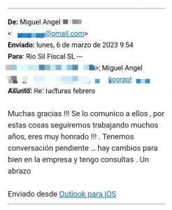 Aquí debajo puedes ver el mail que nos envió un cliente.